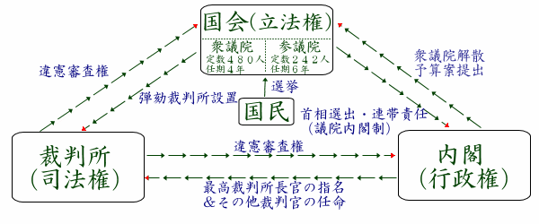 宪法规定,国会是“最高国家权力机关”和“国家唯一的立法机关”,因此拥有最大的政治权力(日本宪法第41条),同时首相也由内阁提名,天皇任命(只是走形式,实际天皇没有拒绝的权力)。
