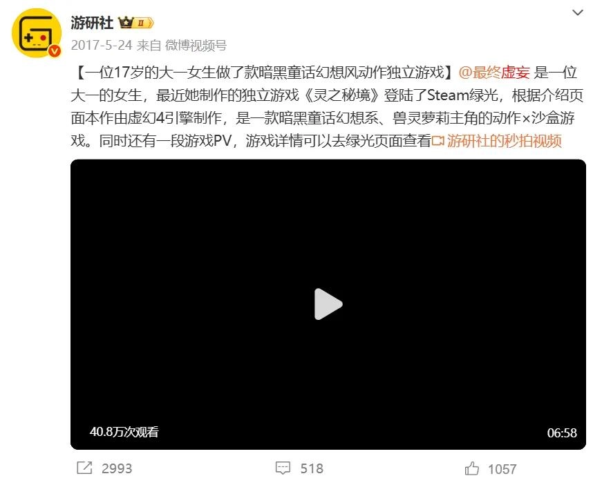 虚妄喵年少成名之后的故事,在互联网上开始有人记载。2017年,多家媒体报道了她的第一部独立游戏作品《灵之秘境》。没有投资,没有经费,各方面条件都显得捉襟见肘,游戏素质自然也是一言难尽。